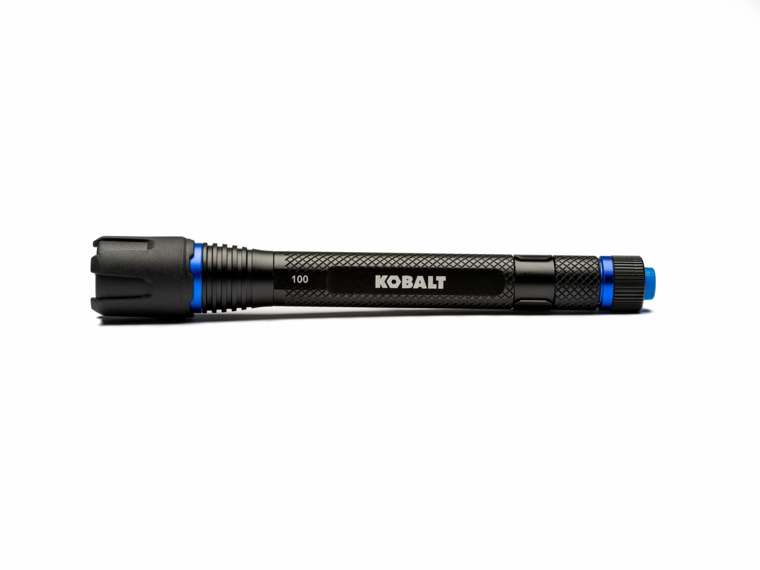 - Kobalt flashlight delivers 100 lumens of super-bright LED light