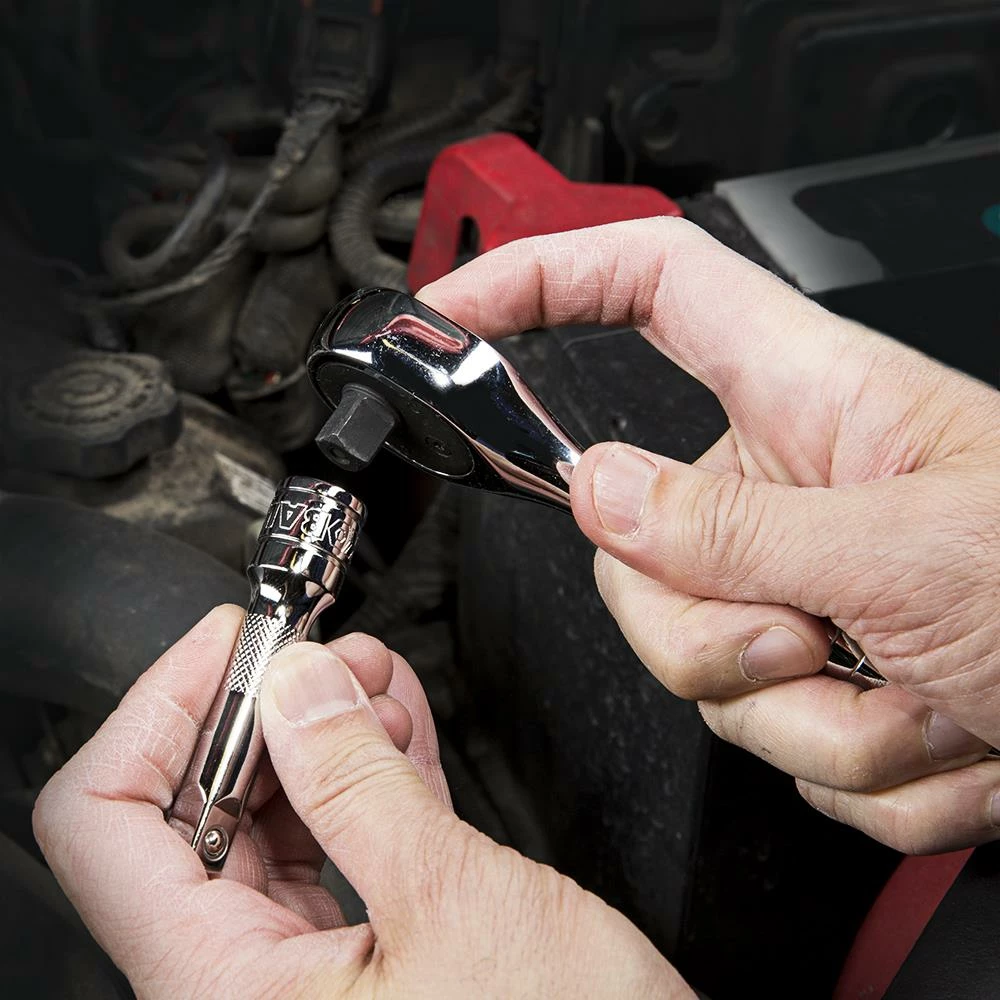 - Includes 1/4-in drive adapters, 1/4 x 3/8-in and universal joint extensions