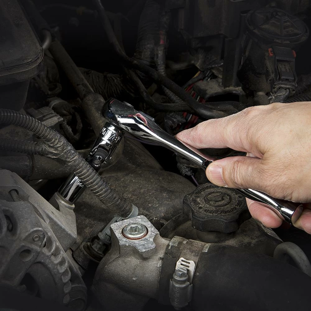 - Includes 3/8-in drive adapters 3/8 x 1/4-in, 3/8 x 1/2-in and a universal joint adapter